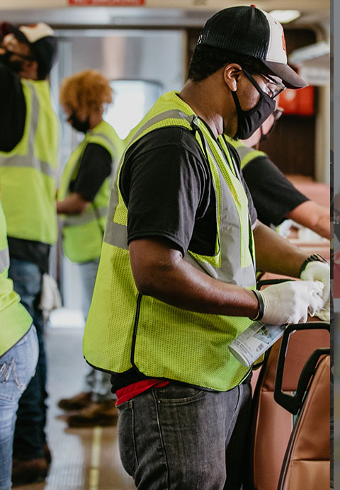 SSL sanitization procedures include disinfecting seats, windows, crash pads, handrails, door handles, head rests and grab handles. Each train car is mopped with a stringent disinfectant and specialized equipment “fogs train cars with disinfectant,” NICTD said.